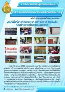 วันที่ 15 ตุลาคม 2568 นายสมพงษ์ แสนสำโรง รองผู้อำนวยการสำนักงานเขตพื้นที่การศึกษาประถมศึกษาเชียงใหม่ เขต 4 พร้อมด้วย นางสาวนงนภัส แก้ววงศ์ดี ผู้อำนวยการกลุ่มนโยบายและแผน และบุคลากรกลุ่มนโยบายและแผน ออกพื้นที่ติดตามตรวจสอบอาคารและสิ่งก่อสร้างของโรงเรียนในสังกัด เพื่อรับทราบข้อมูลสภาพปัจจุบัน ปัญหาและความต้องการของโรงเรียน ในการพิจารณาจัดตั้งงบประมาณ งบลงทุน รายการค่าครุภัณฑ์ ที่ดินและสิ่งก่อสร้าง ประจำปีงบประมาณ พ.ศ. 2570 ณ โรงเรียนวัดช่างกระดาษ บ้านแม่กุ้งหลวง สันป่าตอง(สุวรรณราษฎร์ฯ) วัดกู่คำ ชุมชนกิ่วแลหลวงฯ และกิ่วแลน้อยประสิทธิ์วิทยา อำเภอสันป่าตอง สำนักงานเขตพื้นที่การศึกษาประถมศึกษาเชียงใหม่ เขต 4