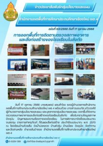 วันที่ 17 ตุลาคม 2568 นายสมพงษ์ แสนสำโรง รองผู้อำนวยการสำนักงานเขตพื้นที่การศึกษาประถมศึกษาเชียงใหม่ เขต 4 พร้อมด้วย นางสาวนงนภัส แก้ววงศ์ดี ผู้อำนวยการกลุ่มนโยบายและแผน และบุคลากรกลุ่มนโยบายและแผน ออกพื้นที่ติดตาม ตรวจสอบอาคารและสิ่งก่อสร้างของโรงเรียนในสังกัด เพื่อรับทราบข้อมูลสภาพปัจจุบัน ปัญหาและความต้องการของโรงเรียน ในการพิจารณาจัดตั้งงบประมาณ งบลงทุน รายการค่าครุภัณฑ์ ที่ดินและสิ่งก่อสร้าง ประจำปีงบประมาณ พ.ศ. 2570 ณ โรงเรียนบ้านห้วยส้ม วัดน้ำบ่อหลวง บ้านหัวริน บ้านเปียง วัดอุเม็ง วัดท่ากาน และวัดสามหลัง อำเภอสันป่าตอง สำนักงานเขตพื้นที่การศึกษาประถมศึกษาเชียงใหม่ เขต 4
