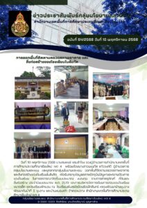 วันที่ 7 พฤศจิกายน 2568 นายสมพงษ์ แสนสำโรง รองผู้อำนวยการสำนักงานเขตพื้นที่การศึกษาประถมศึกษาเชียงใหม่ เขต4 พร้อมด้วยนางสาวนงนภัส แก้ววงศ์ดี ผู้อำนวยการกลุ่มนโยบายและแผน และบุคลากรกลุ่มนโยบายและแผน ออกพื้นที่ติดตาม ตรวจสภาพอาคารและสิ่งก่อสร้างของโรงเรียนในสังกัด เพื่อรับทราบข้อมูลสภาพปัจจุบันปัญหาและความต้องการของโรงเรียน ประจำปีงบประมาณ พ.ศ. 2570 ณ โรงเรียนวัดมะกับตองหลวง บ้านพันตน วัดศิริชัยนิมิตร บ้านใหม่สวรรค์ บ้านเหล่าป่าฝาง วัดทุ่งศาลา และวัดห้วยแก้ว อำเภอแม่วาง สำนักงานเขตพื้นที่การศึกษาประถมศึกษาเชียงใหม่ เขต 4