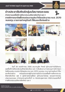 วันที่ 26 พฤศจิกายน 2568 ดร.ชาญชิต ทัพหมี ผู้อำนวยการสำนักงานเขตพื้นที่การศึกษาประถมศึกษาเชียงใหม่่ เขต 4 เป็นประธานการประชุมการพิจารณาจัดตั้งงบประมาณประจำปีงบประมาณ พ.ศ. 2570 งบลงทุน รายการค่าครุภัณฑ์ ที่ดินและสิ่งก่อสร้าง พร้อมด้วยรองผู้อำนวยการสำนักงานเขตพื้นที่การศึกษาประถมศึกษาเชียงใหม่ เขต 4 ผู้บริหารสถานศึกษา ผู้อำนวยการกลุ่ม และบุคลากรกลุ่มนโยบายและแผน เข้าร่วมประชุมในครั้งนี้ ณ ห้องประชุมหางดง สำนักงานเขตพื้นที่การศึกษา