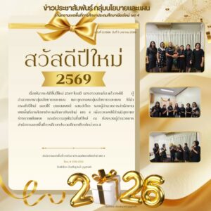 เนื่องในวาระดิถึขึ้นปีใหม่ 2569 โดยมี นางสาวนงนภัส แก้ววงศ์ดี ผู้อำนวยการกลุ่มนโยบายและแผน และบุคลากรกลุ่มนโยบาย และแผน ได้นำกระเช้าปีใหม่มอบให้ นายสมพงษ์ แสนสำโรง รองผู้อำนวยการสำนักงานเขตพื้นที่การศึกษาประถมศึกษาเชียงใหม่ เขต 4 เพื่ออวยพรให้ท่านมีสุขภาพร่างกายแข็งแรง และมีความสุขในวันขึ้นปีใหม่ ณ ห้องรองผู้อำนวยการสำนักงานเขตพื้นที่การศึกษาประถมศึกษาเชียงใหม่ เขต 4