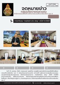 วันที่ 29 มกราคม 2569 นายสมพงษ์ แสนสำโรง รองผู้อำนวยการสำนักงานเขตพื้นที่การศึกษาประถมศึกษาเชียงใหม่ เขต 4 พร้อมด้วยนางสาวนงนภัส แก้ววงศ์ดี ผู้อำนวยการกลุ่มนโยบายและแผน และบุคลากรกลุ่มนโยบายและแผน ได้เข้าร่วมรับชม รายการ “พฤหัสเช้าข่าว สพฐ.” ครั้งที่ 4/2569 ผ่านระบบออนไลน์ เพื่อรับทราบข่าวสาร ข้อราชการและนโยบายจากสำนักงาน คณะกรรมการการศึกษาชั้นพื้นฐาน เพื่อนำไปสู่การปฏิบัติ ณ ห้องประชุมหางดง สำนักงานเขตพื้นที่การศึกษาประถมศึกษาเชียงใหม่ เขต 4
