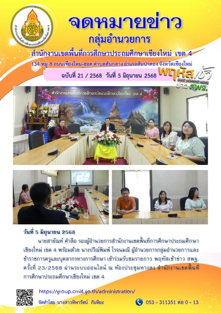 จดหมายข่าว ฉบับที่ 21/2568 เข้าร่วมรับชมรายการพฤหัสเช้าข่าว สพฐ. ครั้งที่ 23/2568 โพสต์โดย admin | มิ.ย. 5, 2025 | จดหมายข่าว | 0 |