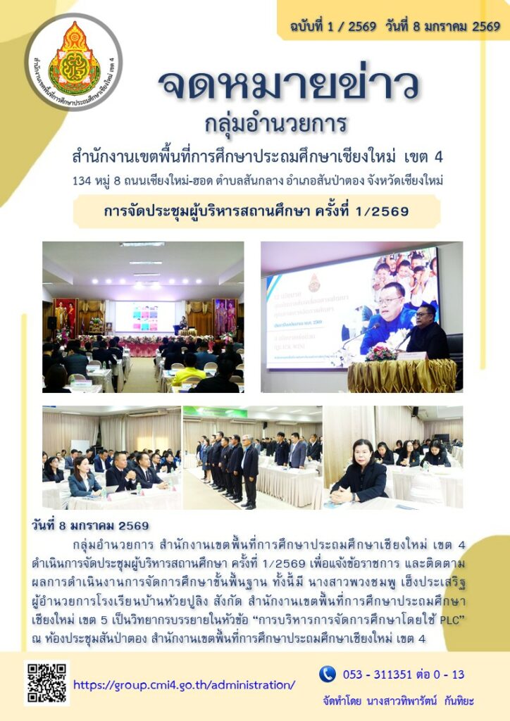 จดหมายข่าว ฉบับที่ 1/2569 การจัดประชุมผู้บริหารสถานศึกษา ครั้งที่ 1/2569 โพสต์โดย admin | ม.ค. 8, 2026 | จดหมายข่าว | 0 |