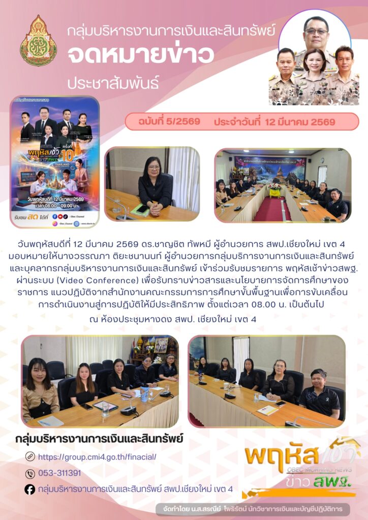 จดหมายข่าวประชาสัมพันธ์ ฉบับที่ 5/2569 ลงวันที่ 12 มีนาคม 2569 โพสต์โดย admin | มี.ค. 16, 2026 | จดหมายข่าวประชาสัมพันธ์ | 0 | จดหมายข่าวประชาสัมพันธ์ ฉบับที่ 5/2569 ลงวันที่ 12 มีนาคม 2569